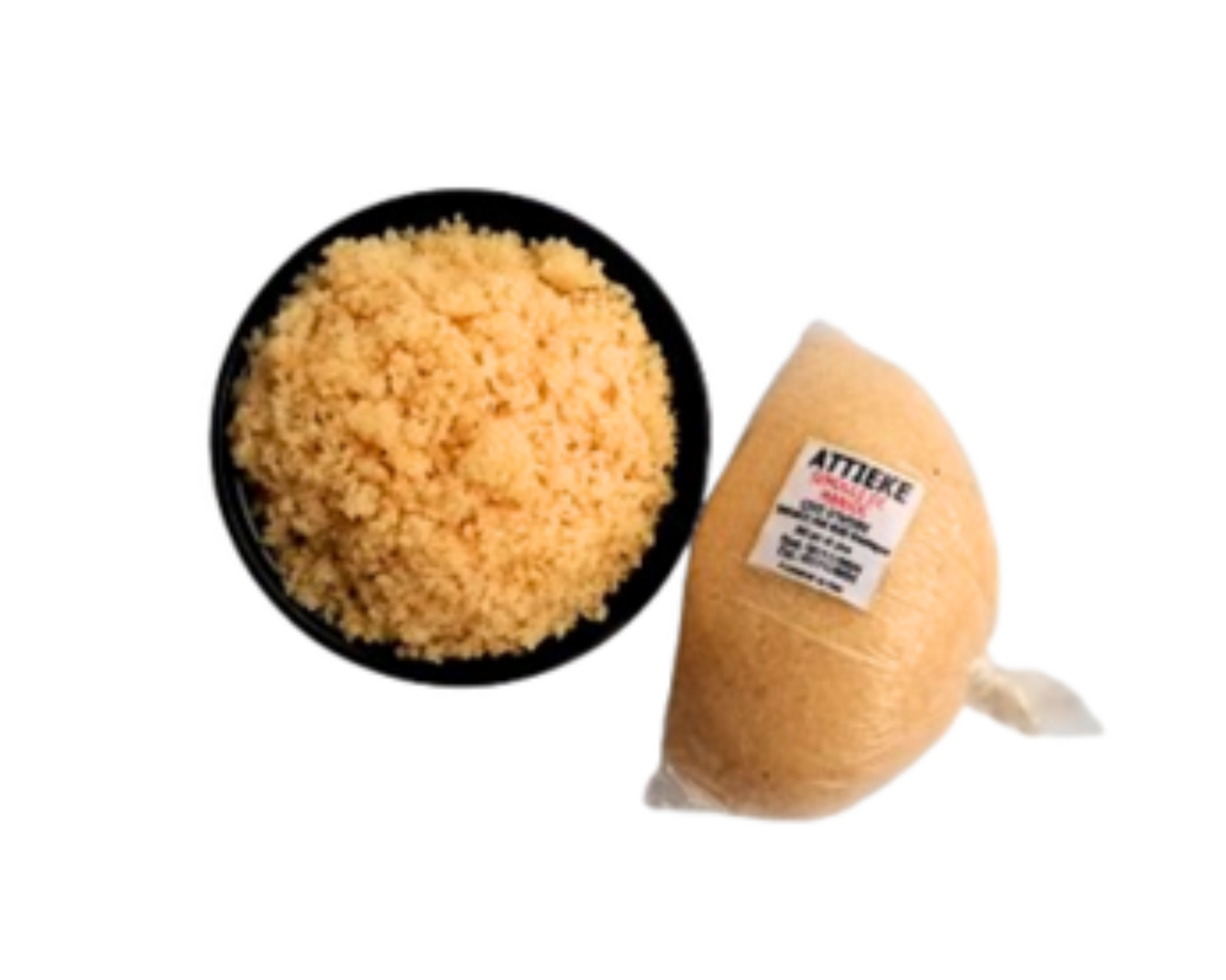 Découvrez notre Attiéké, un plat traditionnel ivoirien qui incarne l'essence même de la cuisine de la Côte d'Ivoire. Fait à base de manioc fermenté, l'attiéké est une semoule légère et légèrement acidulée, parfaite pour accompagner vos plats préférés.